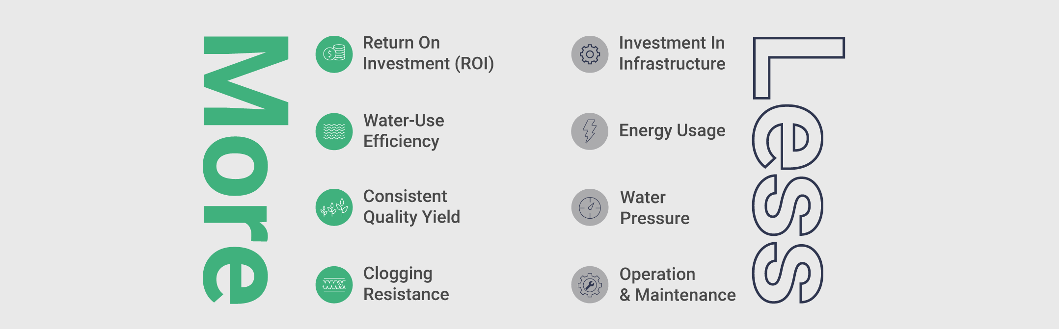 Water is getting scarcer and energy costs are rising — making traditional flood irrigation increasingly wasteful and expensive. Up to 70% of your water can be lost, plus it can harm the soil and crops.